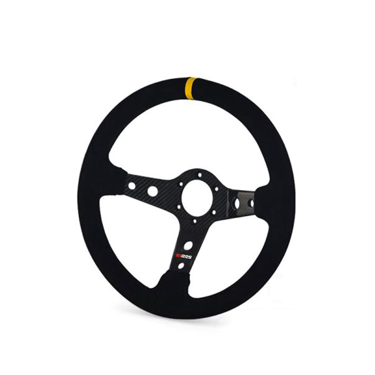 RRS CARBON Rat – F90 350 mm – Sort RuskindRRS CARBON F90 er et højkvalitets motorsportsrat i 350 mm med dyb 90 mm dish, designet til rally og banekørsel, hvor optimal førerposition og maksimal styringskontrol er afgørende. Den lette carbon/aluminium-konstruktion vejer kun 830 gram og giver forbedret styrepræcision samt reduceret belastning på styretøj. Det præformerede greb i sort ruskind sikrer perfekt kontrol, og den gule centerlinje giver hurtig visuel orientering under hård kørsel. Leveres uden hornknap.