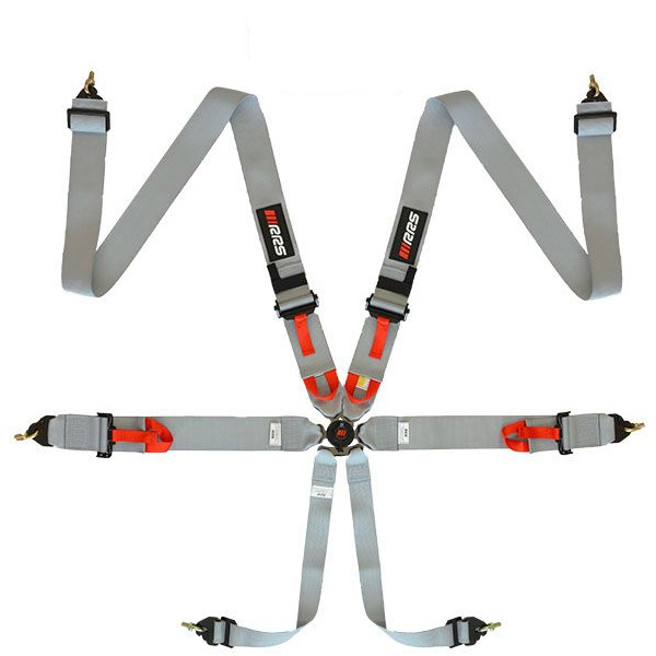 RRS FIA R6 grå er en ultralet og avanceret 6-punkts racersele udviklet til løb efter FIA-reglementet. Den har 3" brede remme og en ny roterende magnesiumspænde. Alle beslag er letvægtskomponenter med antiblændende sort coating, og velcrostropper kan fastholde drikkesystem eller intercom-kabler. Leveres med 6 stk. 7/16 øjer. Vægt uden øjer: 2,9 kg.